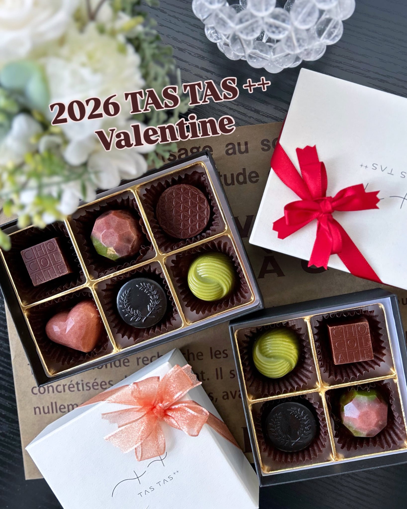 《 2026 rawアソートボックス 》 TAS TAS ++が自信を持ってお届けするrawアソートボックス。 新たに2026年verは全てボンボンショコラに仕上げています。 (※昨年は1種類のみノーマルチョコレート) 【ボンボンショコラ=チョコレートで外殻(シェル)をコーティングし、内部にさまざまなガナッシュを詰めたもの】 手間と美味しさを詰め込んだ全4種類をお楽しみいただける内容になっています。 (※一つずつ手作業のハンドメイドのため色の濃淡はその時々で異なります) 【桜餅】 まるでほんとの桜餅を思わせる桜餅ガナッシュとミルクチョコレートとで風味豊かな味わいの一粒 【ほうじ茶きなこ】 加賀棒のほうじ茶パウダーとオーガニック黒豆きなこの二層のガナッシュで贅沢な和の味わいの一粒 【ブラック塩麹キャラメル】 デーツと塩麹で作った乳製品不使用のキャラメルソースをガナッシュに混ぜ込み、竹炭入りのプレーンチョコレートでコーティングした栄養価の高いスタイリッシュな一粒 【抹茶(デーツ餡入り)】 濃い宇治抹茶のガナッシュと栄養価の高いデーツをペースト状にし子のようにしたデーツで和菓子のような味わいの一粒 お世話になった方への感謝の品に。 大好きな方へのプレゼントに。 ご自身へのご褒美に。 オリジナルボックスとリボンでプレゼントに最適です! (リボンが変更になる場合がございます) 〈 ローチョコレート〉 一般的なチョコレートのように原料のカカオ豆を高温で焙煎せず、低温管理された特別な製法で仕上げられたrawカカオを使用し、熱により失われがちな貴重な栄養素を失うことなくそのまま体内に取り入れることができるローチョコレート。 その栄養素には素晴らしい効果効能があり、美容と健康はもちろんのこと心の健康に欠かせない栄養成分になります。 また、栄養素だけではなくカカオ本来の芳醇な香りもお楽しみいただけます。 乳製品、白砂糖、添加物を一切使わずに仕上げています。 〈美味しくお召し上がりいただく方法〉 冷蔵庫から出してすぐにお召し上がりいただくより、5〜10分ほど置いて室温に戻してからお召し上がりいただくと口溶け滑らかに美味しくお召し上がりいただけます。(夏場は溶けやすいのでご注意下さい) [ 名称 ] ローチョコレート [ 原材料 ] 一括表示 有機ローカカオバター、有機ローカカオパウダー、有機プレミアムココナッツオイル、有機ココナッツミルクパウダー、無添加生カシューナッツ、有機メープルシロップ、有機アガべシロップ、無添加デーツシロップ、キビ砂糖、無添加バニラエクストラクト、塩、国産さくらパウダー、国産桜葉パウダー、ビーツパウダー、宇治抹茶パウダー、有機ドライデーツ、乾燥米麹、天然塩、加賀棒ほうじ茶パウダー、有機黒豆きなこ、 [ 内容量 ] 4個 [ 保存方法 ] 15℃以下で保存。(夏場は要冷蔵) [ 賞味期限 ] 冷蔵保存3週間(開封後は出来るだけ早くお召し上がり下さい) [ 配送方法 ] 冷蔵便 [アレルギー] カシューナッツ *本品製造所では、下記の原材料を含む製品を製造しております。 (えび、かに、くるみ、小麦、そば、卵、乳、落花生、アーモンド、あわび、いか、いくら、オレンジ、牛肉、カシューナッツ、キウイフルーツ、ごま、さけ、さば、大豆、鶏肉、豚肉、バナナ、もも、やまいも、りんご、ゼラチン、マカダミアナッツ)